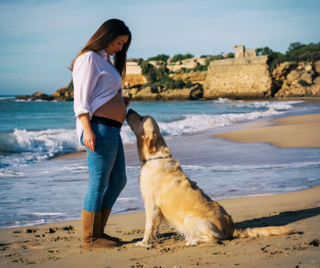 Es ist außerdem eine gute Idee, Deinen Hund an einer lockeren Leine neben Dir und dem Kinderwagen laufen zu lassen. Hier kannst Du nachlesen, wie Du Deinem Hund beibringst, richtig an der Leine zu laufen. Behalte im Kopf, dass Deine Geduld möglicherweise etwas nachlassen wird, während Du dabei bist, Dich an das neue Elterndasein zu gewöhnen. Dies kann Einfluss darauf haben, wie gut Du Deine Fellnase auf die neuen Anforderungen vorbereitest. Deinen Hund bereits während der Schwangerschaft allmählich an neue Abläufe zu gewöhnen, bedeutet, dass er weniger zu Verhaltensproblemen neigen wird, sobald Dein Baby geboren ist.